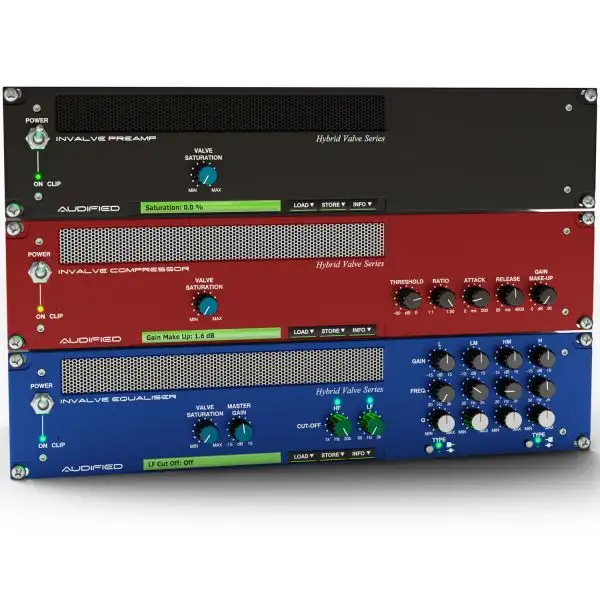 Audified inValve Effects is a set of 3 plug-ins simulating valve devices with exact modeling of analog circuits and valve characteristics. These affordable plug-ins were originally prepared for TC PowerCore, but they now run on native platforms (VST2/VST3/AU/AAX). The latest version is 64 bit and supports the current versions of operating systems. Plug-ins can handle 1-8 channels without the need to use the special multichannel version (standard and multi-channels versions merged into one universal version).