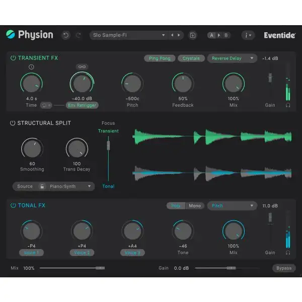 - Process Transient and Tonal Effects separately using Eventide’s Improved Structural Split technology