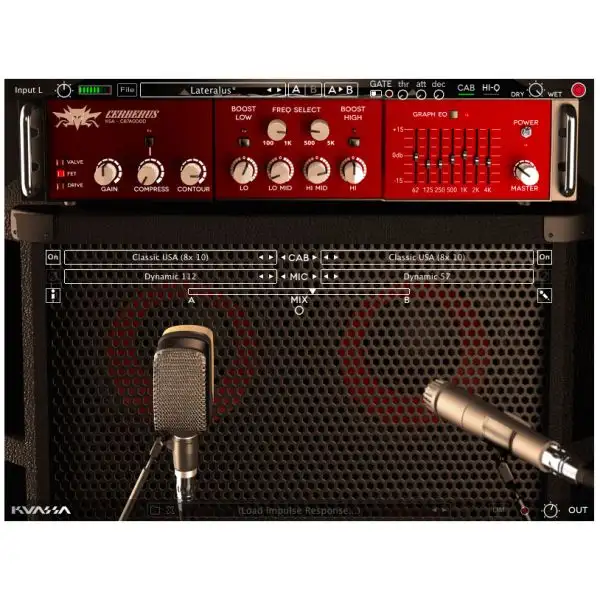 Cerberus Bass Amplifikation also comes with features standard to Kuassaβs other amp products; noise gate, and dual cabinet miking modeler. In addition, the Rack Extension version features a handful of CV input controls, while the VST/VST3/AU/AAX version will have an external IR loader and a 3D miking interface.