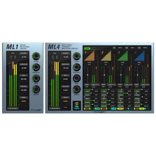 The McDSP ML4000 is a high-resolution limiter and multi-band dynamics processor designed for music, mastering, post, and live sound. The ML4000 is two plug-ins: ML1 (Master Limiter) and ML4 – (Multi-band Gate, Expander, and Compressor fed into the ML1 mastering limiter).