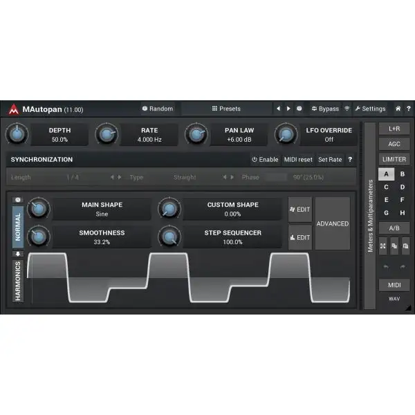 MeldaProduction MAutopan is a classic auto panner with attitude! The adjustable shape oscillator design and automatic host synchronization features can create anything from a subtle natural wideness, to a full on sonic storm.