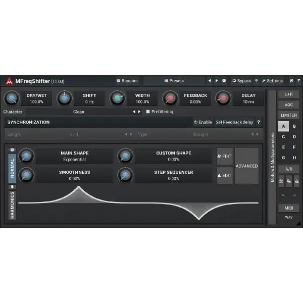 MeldaProduction MFreqShifter is an extremely versatile frequency shifter. Unlike pitch-shifters it doesn’t keep harmonic relationships and can provide everything from mild stereo expansion to complete sonic destruction.
