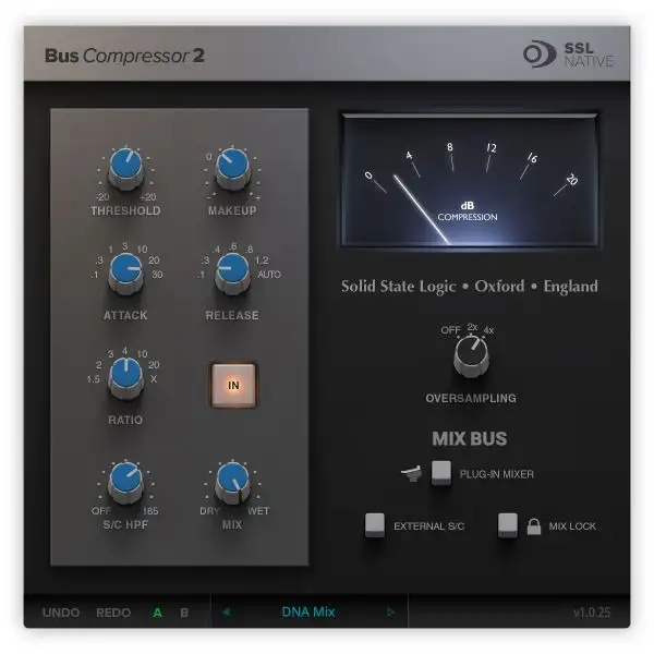 The center section compressor from SSL’s 1980s G Series analog console is an audio production legend. It is the secret behind countless classic recordings. It is a simple unit with a simple purpose; it makes complete mixes sound bigger, with more power, punch and drive. It brings cohesion and strength to your mix without compromising clarity.