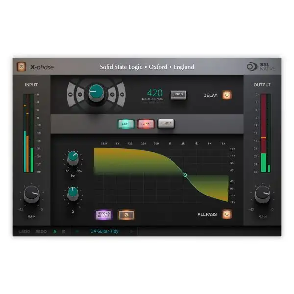 The Solid State Logic X-Phase is an All-pass Filter plug-in that offers the user manual control and high quality response. It enables the user to apply a phase shift (sometimes called a phase offset) at a specified frequency within a signal. Unlike other filter types where the gain of selected frequencies is altered, with an All-pass Filter the gain remains unchanged throughout the signal. This is useful for fixing phase problems with microphones when recording: e.g. overheads causing phase problems when mixed with close mic’s.