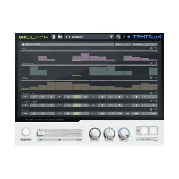Tek’it Audio DlayR is a pattern controlled effect plug-in that can be used to create delay, stutter and filter effects sync on the beat of your track.