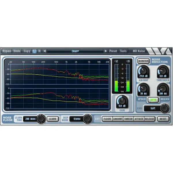 Wave Arts MR Noise is a broadband noise reduction processor. It distinguishes itself by being both great sounding and incredibly easy to use. Like most noise reduction systems, MR noise works in the frequency domain, and requires that the noise spectrum be learned before noise reduction can commence. If your track starts with a bit of silence then MR Noise will work right out of the box, since by default MR Noise has the Learn parameter enabled, then when you hit play, MR Noise will learn the noise profile and start noise reduction. The default parameters work extremely well for most cases.