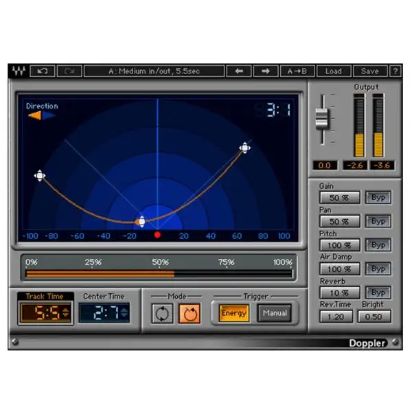 Explore new dimensions of sound and movement with Doppler. Create the illusion of traveling through space or the rush of a passing train. With Doppler, you control the frequency change, speed, and distance from your sonic source with pinpoint accuracy.
