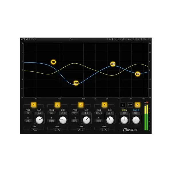 The Waves eMo Q4 EQ plug-in is a highly practical and convenient 4-band paragraphic equalizer. It can be used either on its own or as part of the eMotion LV1 live mixer channel strip. Designed with a live workflow in mind, it provides uncompromising sound quality, super-low CPU consumption, zero latency, multi-touch compatibility and smooth filters free of noise and artifacts.