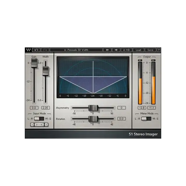 The Waves S1 Stereo Imager is ideal for stereo tracks as well as full mixes. The S1 is a unique and powerful set of tools that uses psycho-acoustic spatial imaging techniques to enhance and alter stereo separation.