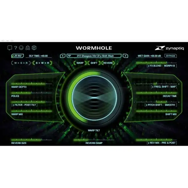 From beautifully shimmering detuned guitar widening and glassy ambient octave-shift tails, to surreal ambiences, starship drones, alien, monster, and robot voices β Zynaptiq WORMHOLE is the new indispensable multi-effects powerhouse for sound designers, music producers and film composers alike. Combining ultra-clean pitch/frequency shifting, eccentric spectral warping, dual lush reverbs, and unique dry/wet morphing, WORMHOLE delivers sounds so unearthly youβll swear theyβre from a parallel universe.